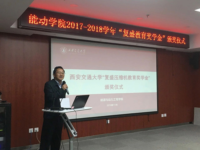 從1997年開始,復(fù)盛在西安交大設(shè)立教育獎(jiǎng)學(xué)金,截止到2018年,已有21年的合作。2018年11月30日,西安交大能動(dòng)學(xué)院2017-2018學(xué)年“復(fù)盛教育獎(jiǎng)學(xué)金”頒獎(jiǎng)儀式圓滿成功。復(fù)盛股份公司研發(fā)長(zhǎng)何東平先生和復(fù)盛中國區(qū)產(chǎn)品研發(fā)部副理余悅先生等出席本次頒發(fā)儀式。