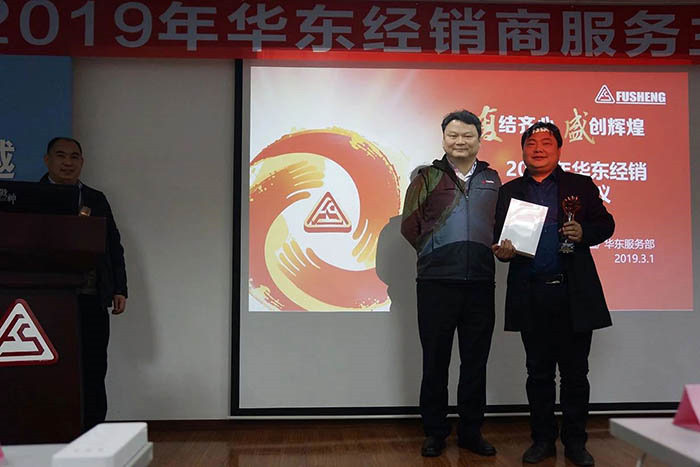 會議期間,為了鼓勵在售后服務(wù)方面表現(xiàn)突出的經(jīng)銷商,復(fù)盛為的獲獎?wù)邷蕚淞司赖莫劆钆c獎品,方英華總經(jīng)理為4大區(qū)域中售后服務(wù)方面表現(xiàn)為突出的經(jīng)銷商頒獎。